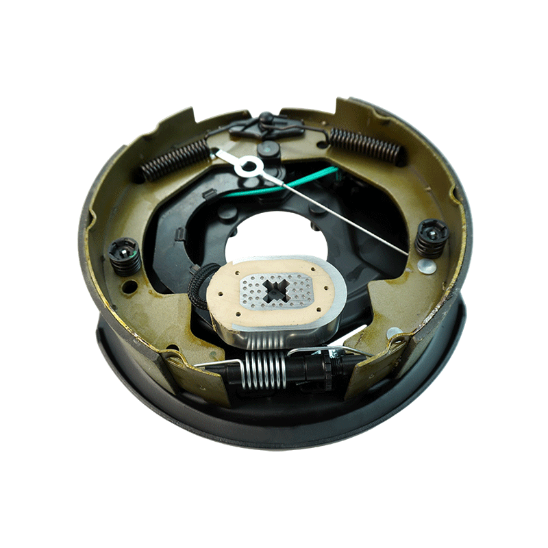 Press the tow vehicle’s brake pedal—this sends an electric signal to a coil on the trailer. The coil makes a magnet that pulls a part (armature), which pushes brake shoes against the drum to slow things down. Let go of the pedal, power cuts off, and a spring pulls the shoes back. Nice ones adjust the magnet strength for different loads.